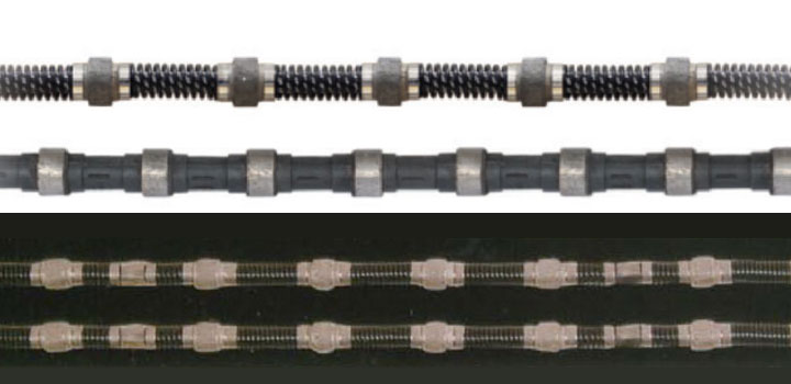 采用橡膠繩主要有如下優點:橡膠與鋼繩有更好的結合力,黏結得更牢,更能承受惡劣工作中的沖擊;橡膠耐溫性好,可適應冷卻水不足時的使用,譬如在水霧狀況下的工作性能;柔韌性強,減少珠子使用中的偏磨,也更適應較小的曲率半徑。